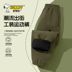 男童加绒工装裤儿童冬季长裤男孩梭织运动裤男大童秋冬裤子