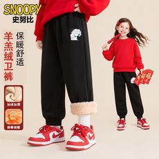 女童加绒裤子女孩冬裤加绒卫裤羊羔绒裤儿童加厚棉裤冬新年